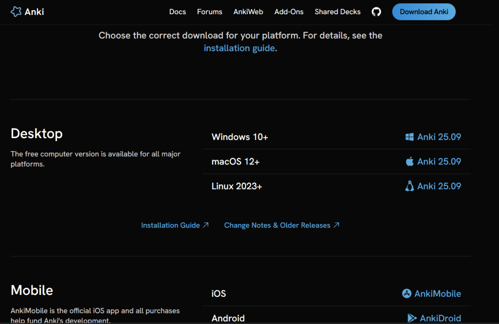點選"Download" Anki 會指向您所需的系統平台下載即可