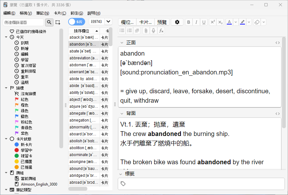 13. 以上就完成匯入牌組,開始使用Anki 學習吧!